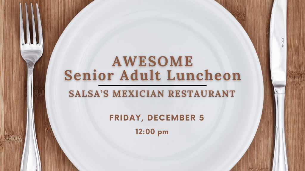 The AWESOME Senior Luncheon for November and December will be December 5, 2025 at 12:00 pm at Salsa's Mexican Restaurant on Hwy 90 W in Lake City. We will be celectating November and December birthdays. Please make plans to join us for a wonderful time of fellowship. There is a sign-up sheet at the Welcome Center.